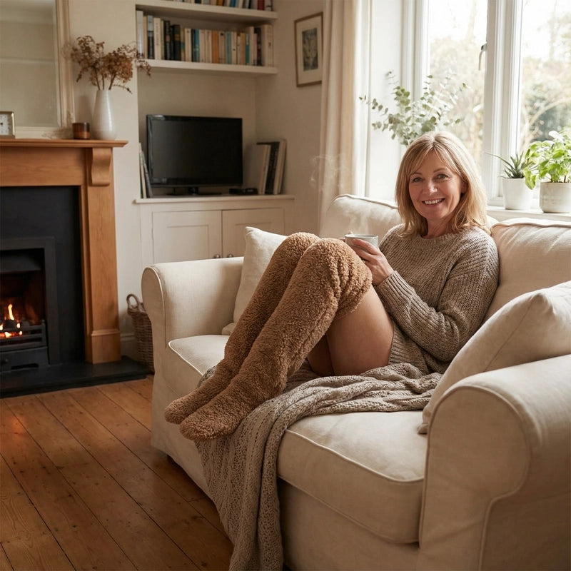 Mūsų kojinės yra sukurtos maksimaliam jaukumui namuose, tačiau jos taip pat puikiai tinka dėvėti po ilgesniais drabužiais lauke, suteikiant papildomą šilumos sluoksnį šaltu oru.